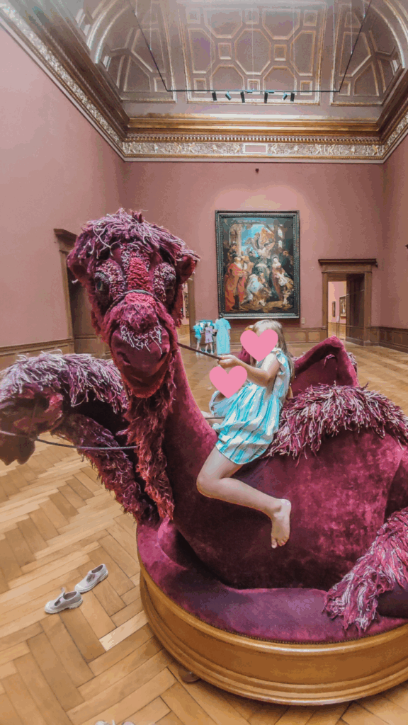 At most art museums, you spend your time reminding kids not to touch anything — not an easy job! But at the KMSKA, it’s the opposite. There’s an entire route of artworks where kids are encouraged to touch, crawl inside, or even climb on them. That makes it much easier for them to resist the rest.